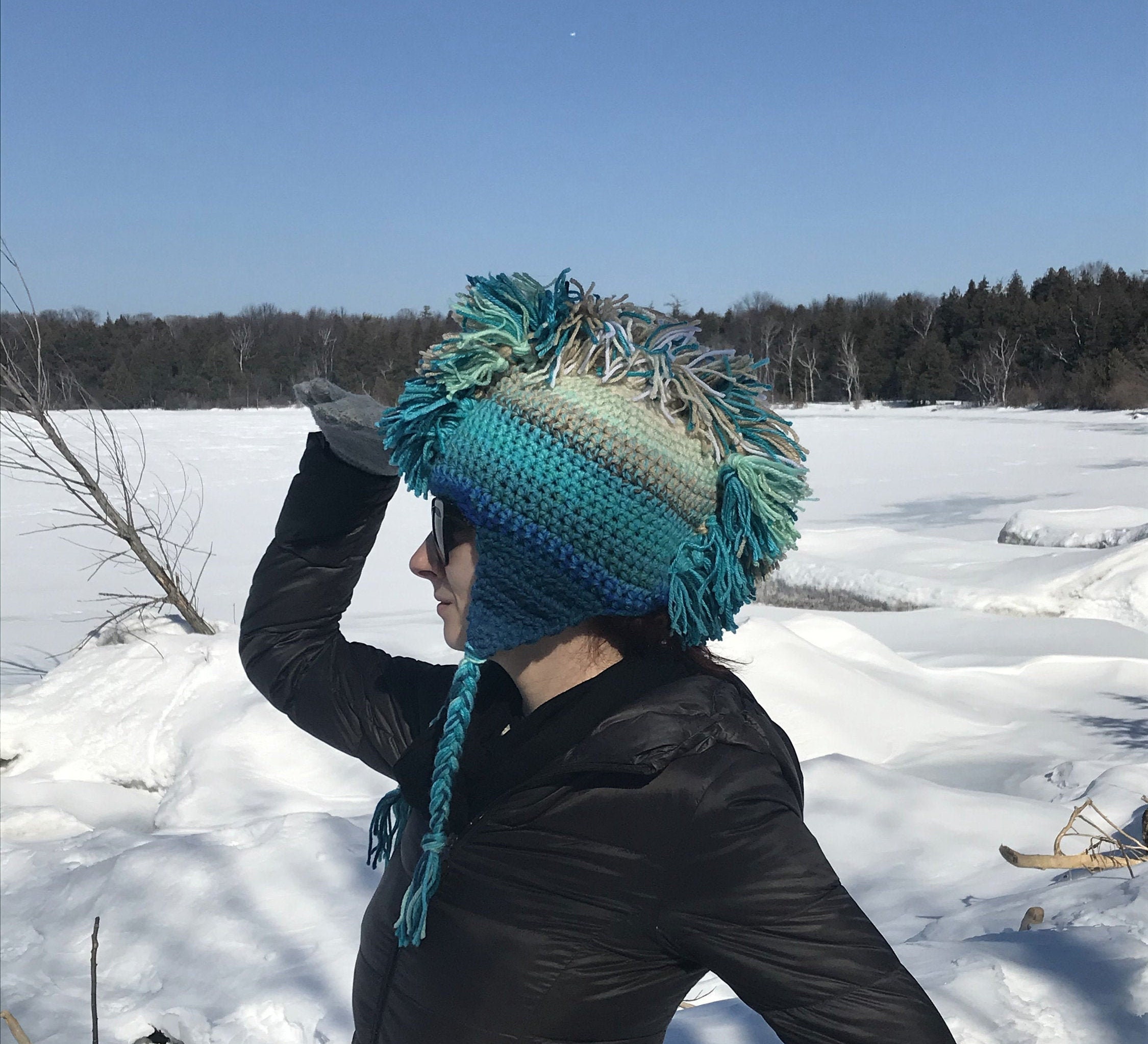 This One of a kind handmade crochet hat was inspired by the colors of Spirit Lake,