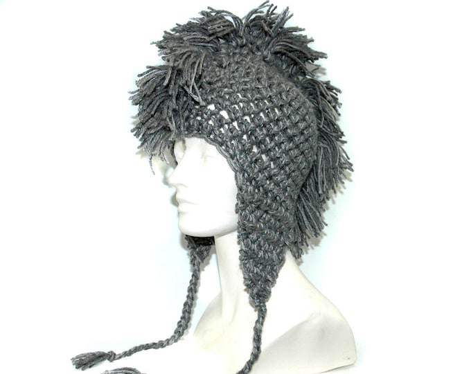 Gray Ombre Crochet Mohawk Hat: Handmade Earflap Beanie